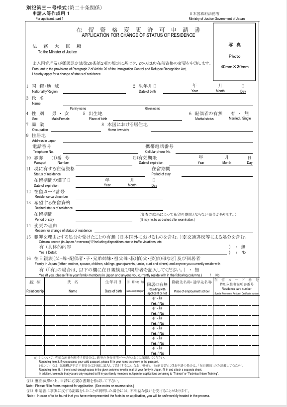 申請書は、出入国在留管理局のホームページからダウンロードすることができます。