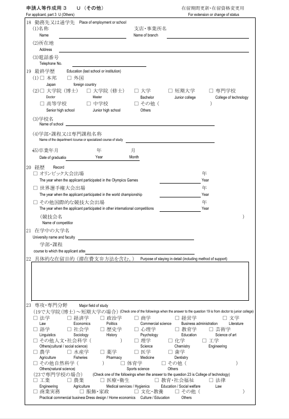 出入国在留管理庁のホームページからは、PDFだけでなくEXCEL版もダウンロードすることができます。パソコンで書いても、ボールペンや万年筆などで書いても構いませんが、フリクションペンは使わないでください。