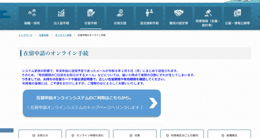参照:在留申請のオンライン手続 | 出入国在留管理庁