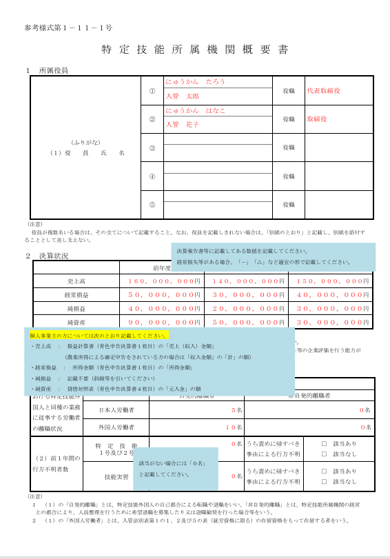 3. 特定技能所族機関概要書(参考様式1-11-1)