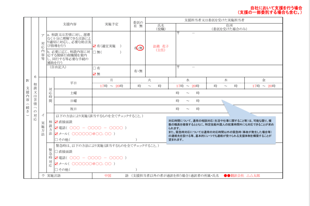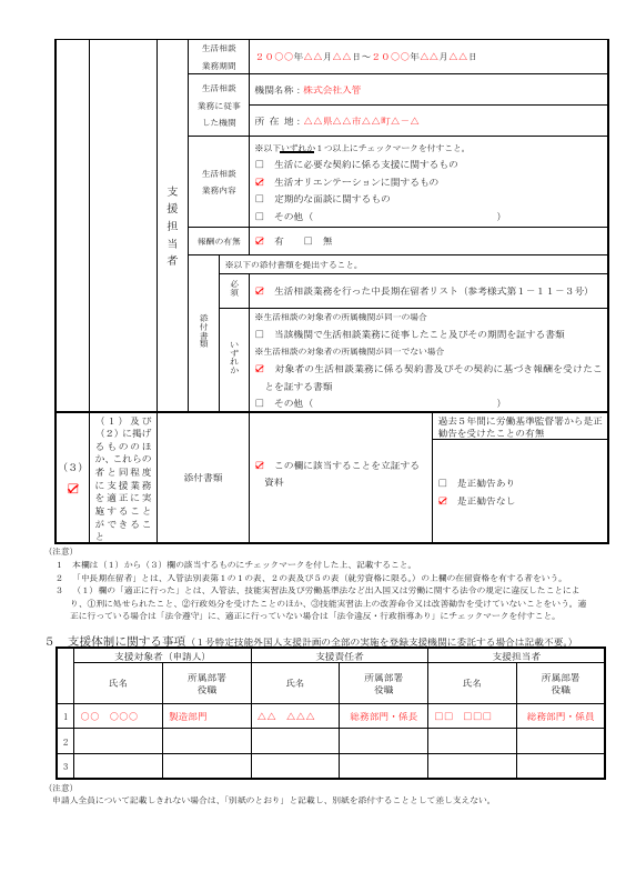 ることができる者として認めたもので、役員又は職員の中から、支援責任者及び外国人