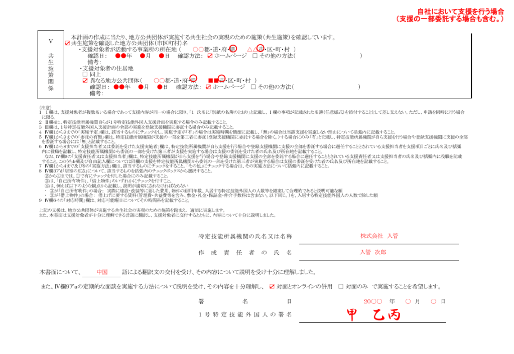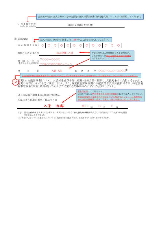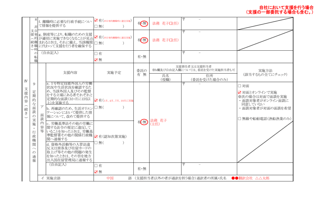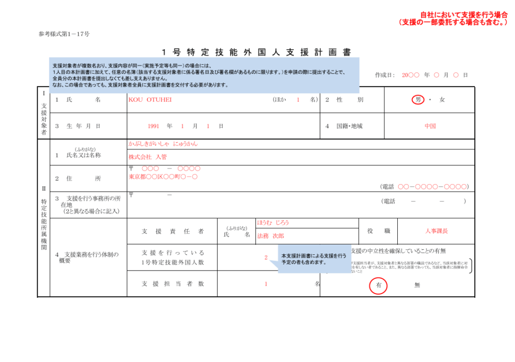 2.1号特定技能外国人支援計画書(参考様式1-17号)