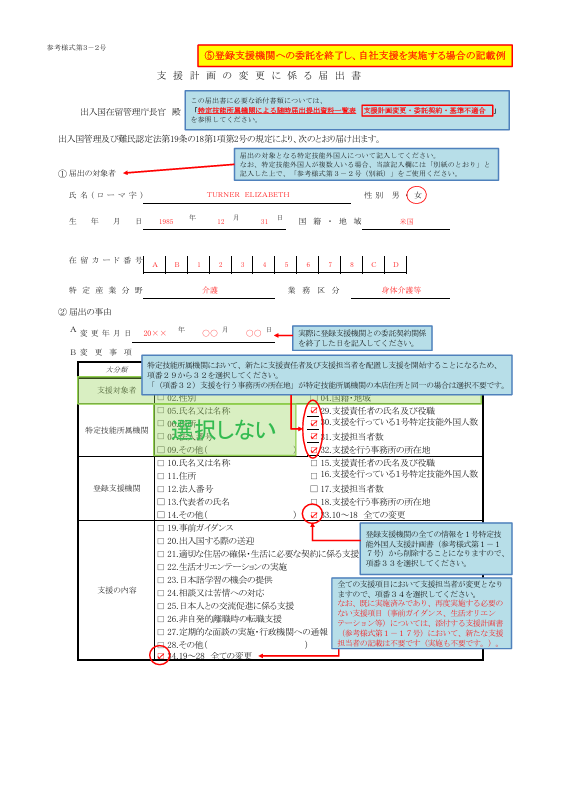 まずは、どの特定技能1号外国人の、どのような支援に変更があるのかを届け出る書類を作成していきましょう。