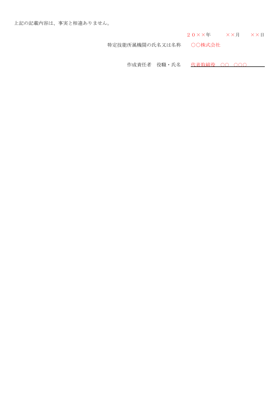 特定技能所族機関概要書(参考様式1-11-1)の「中長期在留者の受入れ実績等」で(2)を選択した場合はこちらを作成してください。