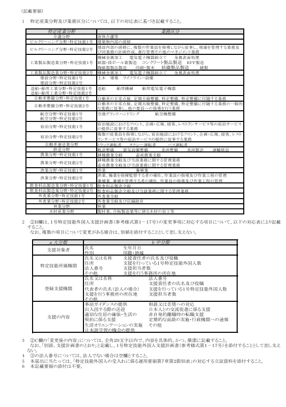 2. 1号特定技能外国人支援計画書(参考様式1-17号)