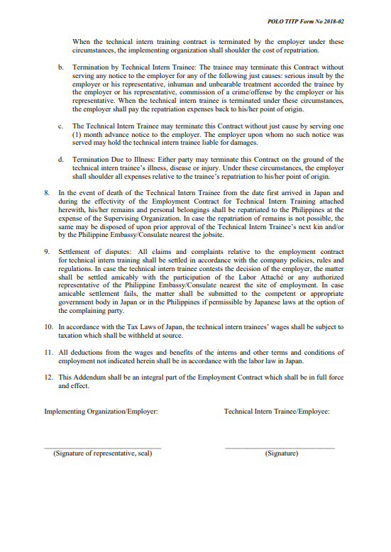 8.Addendum to the Master Employment Contract(雇用契約書の補遺文書)